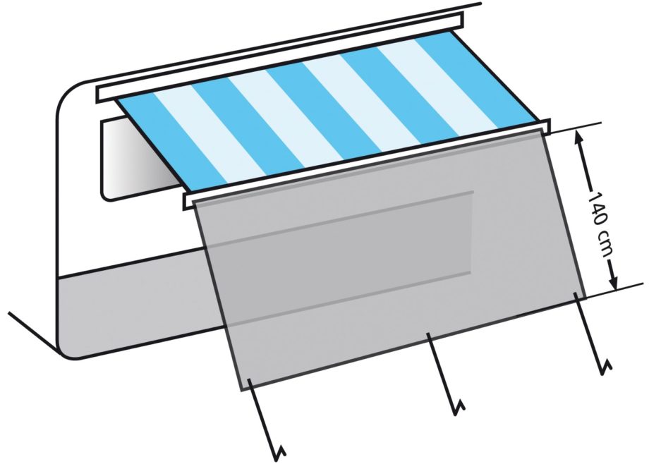 Een ondergaande zon is mooi wanneer u daar heerlijk naar kunt kijken. Niets is zo erg als de zon tijdens het eten onder het zonnescherm of eventueel uw cassetteluifel door. Daarvoor heeft Eurotrail de Sunblocker ontwikkelt. Een fijnmazige polyester zonnegaas voorzien van een pees (6mm) zodat hij aan de voorzijde in het zonnescherm/ de cassette geschoven kan worden zodat er nog genoeg licht door heen komt van de ondergaande zon alleen de felle stralen buiten blijven. Tevens verkrijgbaar in 350cm en 400cm breedte. Breedte van deze Sunblocker: 300cm.