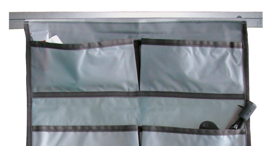 Organizer met 8 vakken. Deze organizer biedt voldoende ruimte voor kleine en grote items. Organizer kan met de pees aan de caravan worden bevestigd of met klittenband aan een tentstok.