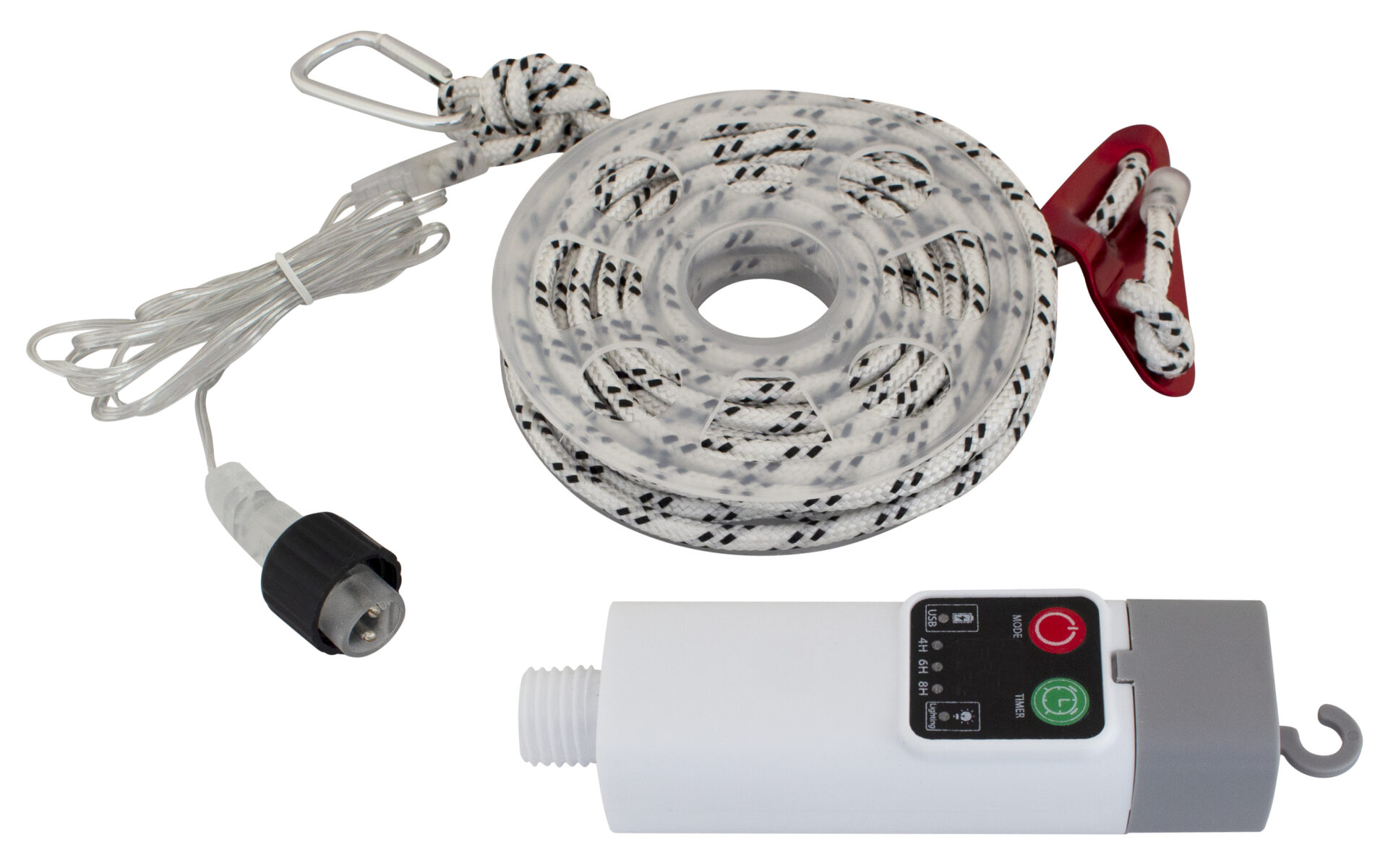 Deze scheerlijnen van 5 mm dik en 5 meter lang zijn voorzien van heldere LED-verlichting over de hele lengte. Ideaal voor extra zichtbaarheid en veiligheid rond je tent, tarp of luifel. Geen struikelpartijen meer in het donker!