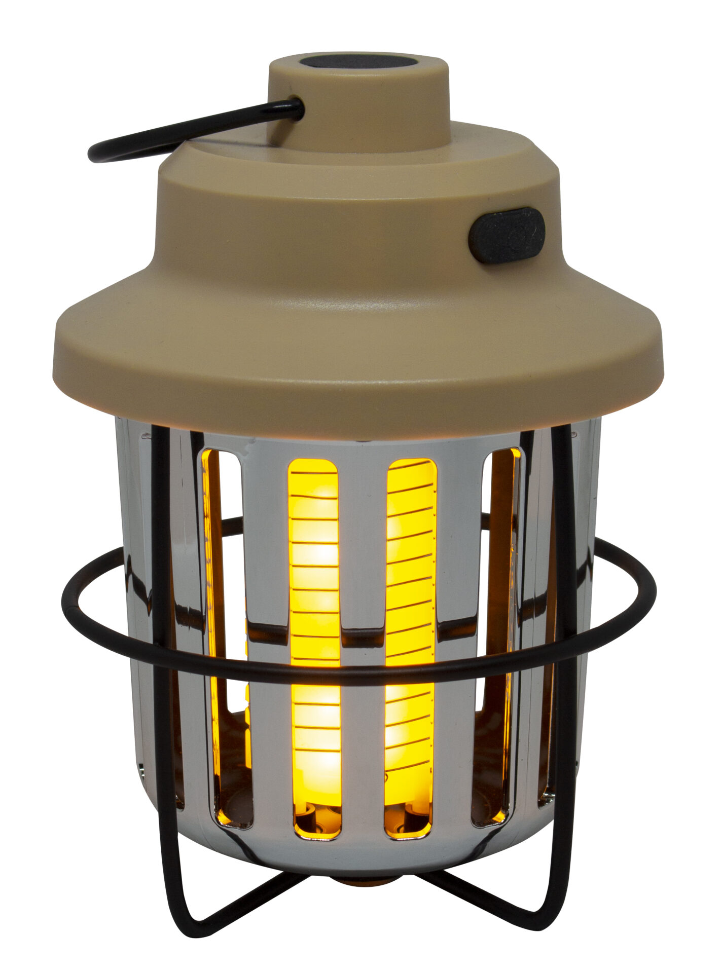 Naast de muggenfunctie geeft de lamp een warm, vlammend lichteffect dat zorgt voor een gezellige sfeer — perfect voor avonden buiten. De lamp kan je ophangen op waar je maar wilt: in de tent, onder de luifel of aan een tak.